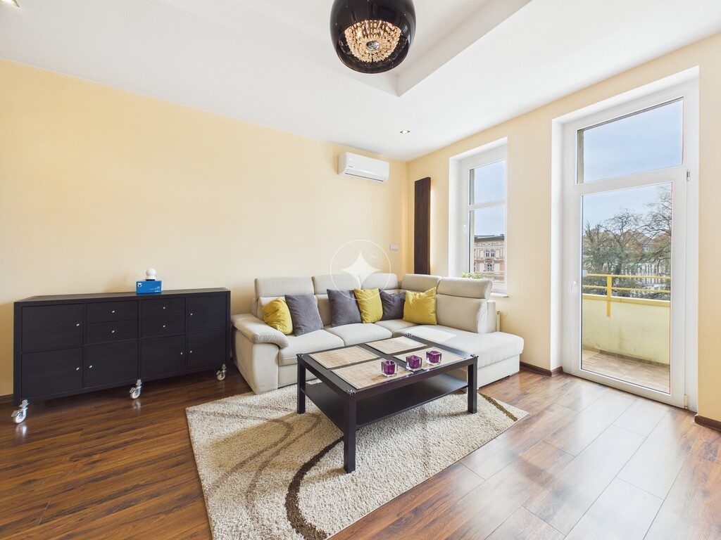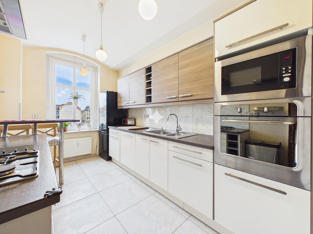 Mieszkanie jest w stanie bardzo dobrym, gotowym do zamieszkania. Łazienka oraz kuchnia w pełni wyposażona, na podłogach w większości pomieszczeń położone są panele oraz płytki. Strefa dzienna oraz sypialnia są klimatyzowane.