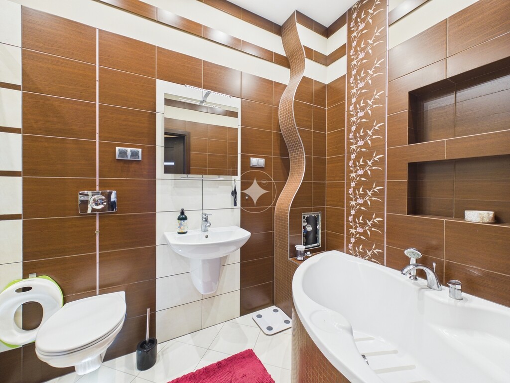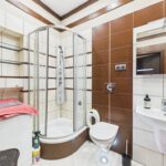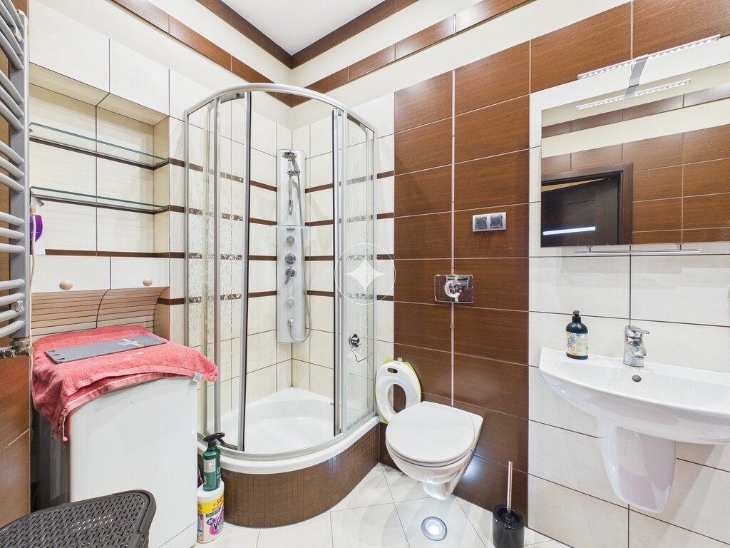 - łazienka z prysznicem, wanną i WC,