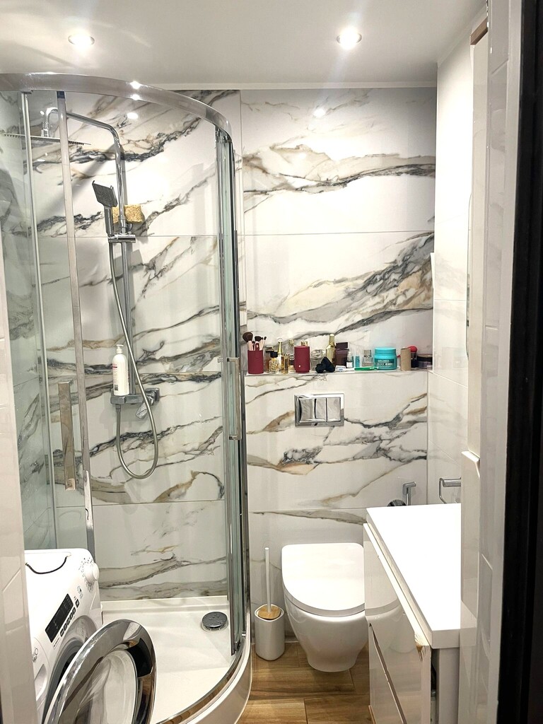 Mieszkanie zostało wykończone z wysokiej klasy materiałów z dbałością o każdy szczegół.