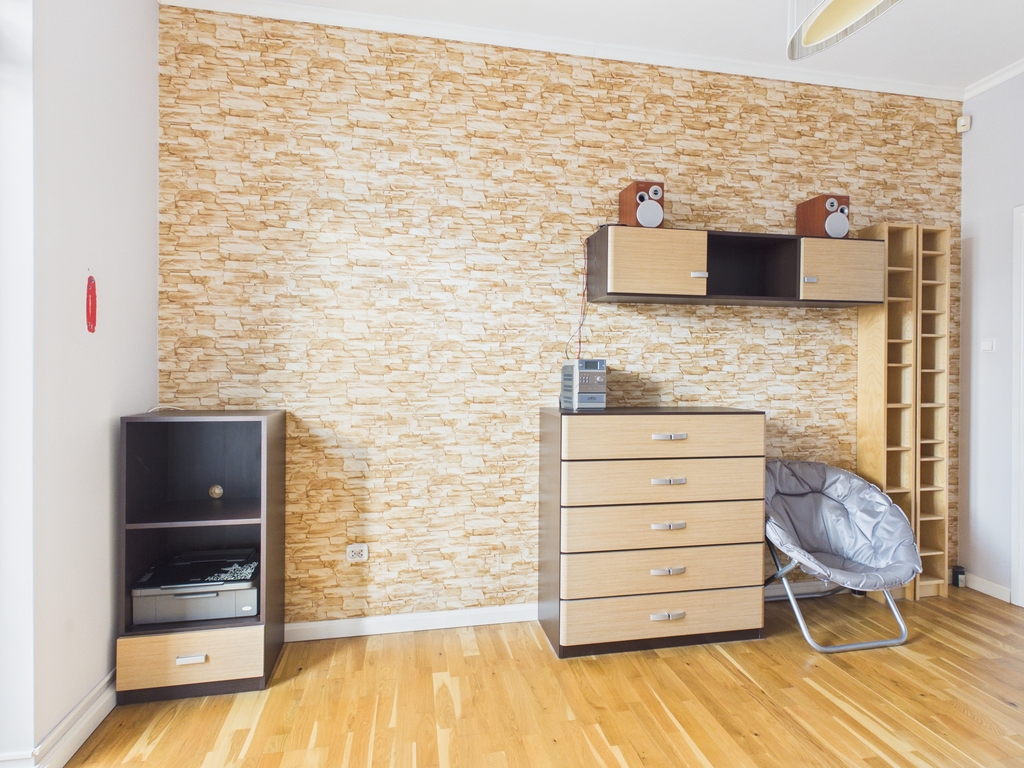 Mieszkanie wykończone w wysokim standardzie. Na podłogach znajdują się panele oraz płytki.