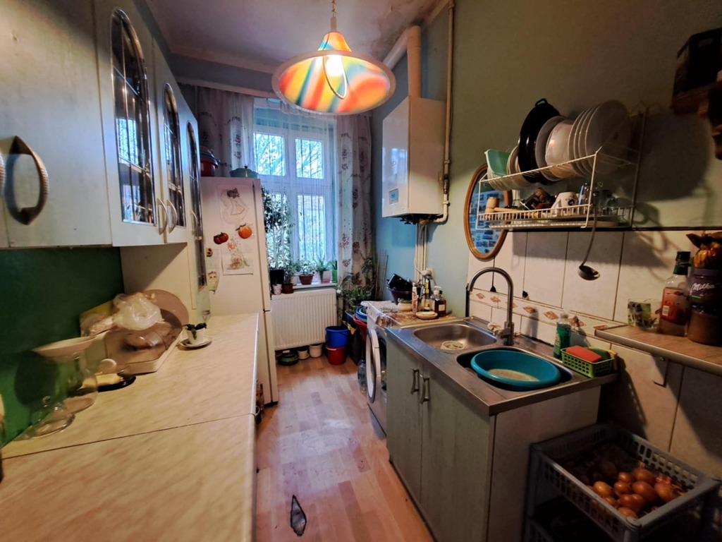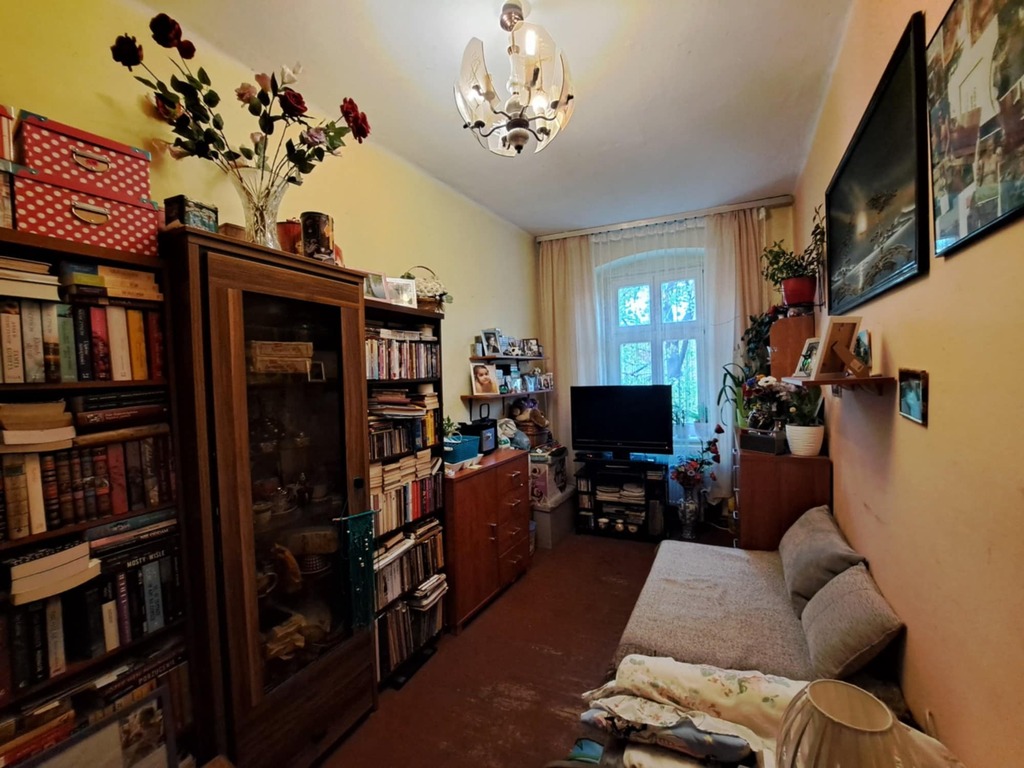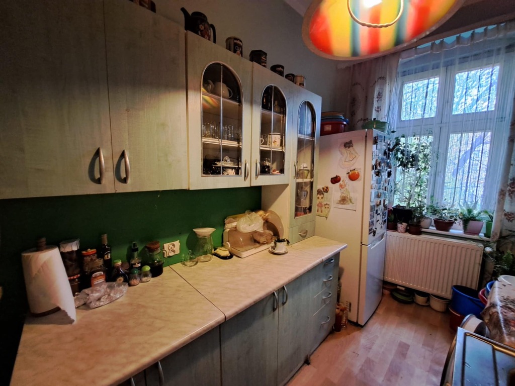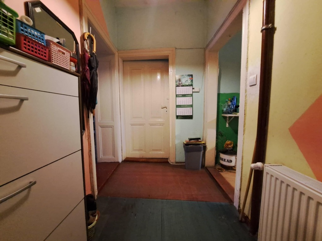 - układ: 2 przestronne pokoje, kuchnia, przedpokój, WC na półpiętrze (jest możliwość zrobienia łazienki i WC w mieszkaniu)