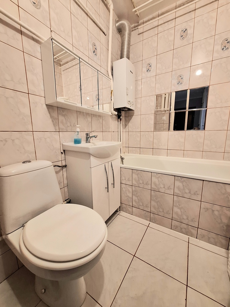 Ogrzewanie własne gazowe bez podzielników  (kotłownia w bloku). Ciepła woda pochodzi z piecyka gazowego.