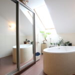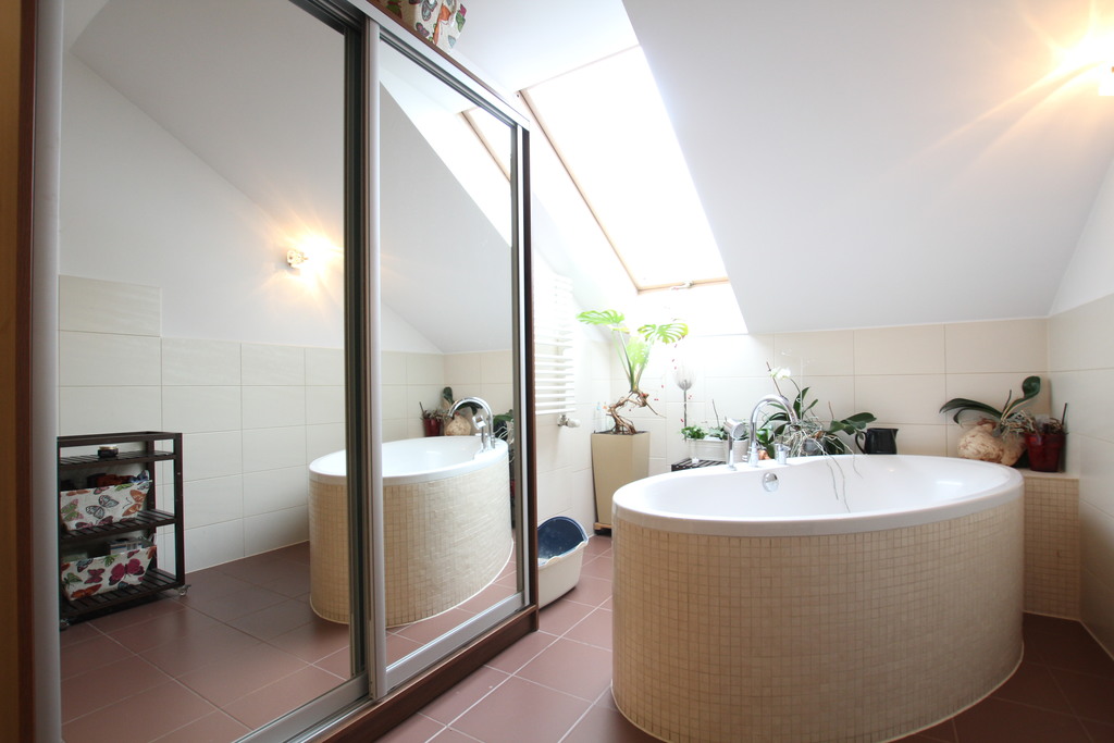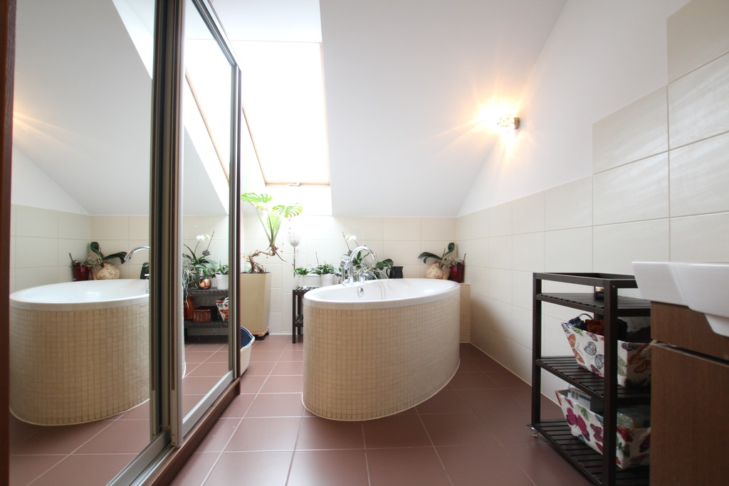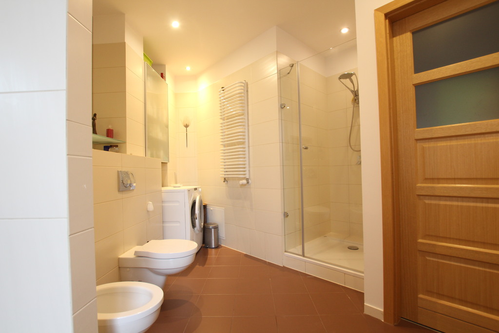 -pokój kąpielowy z wanną wolnostojącą i kabiną natryskową