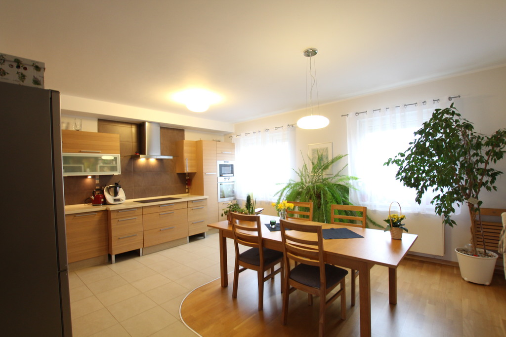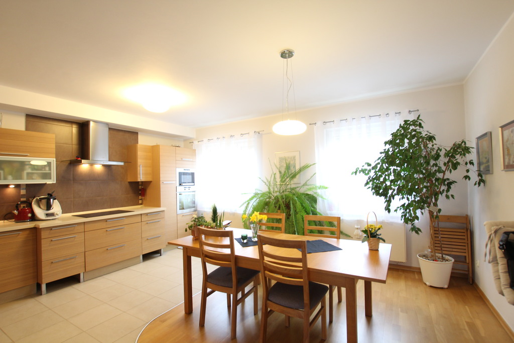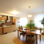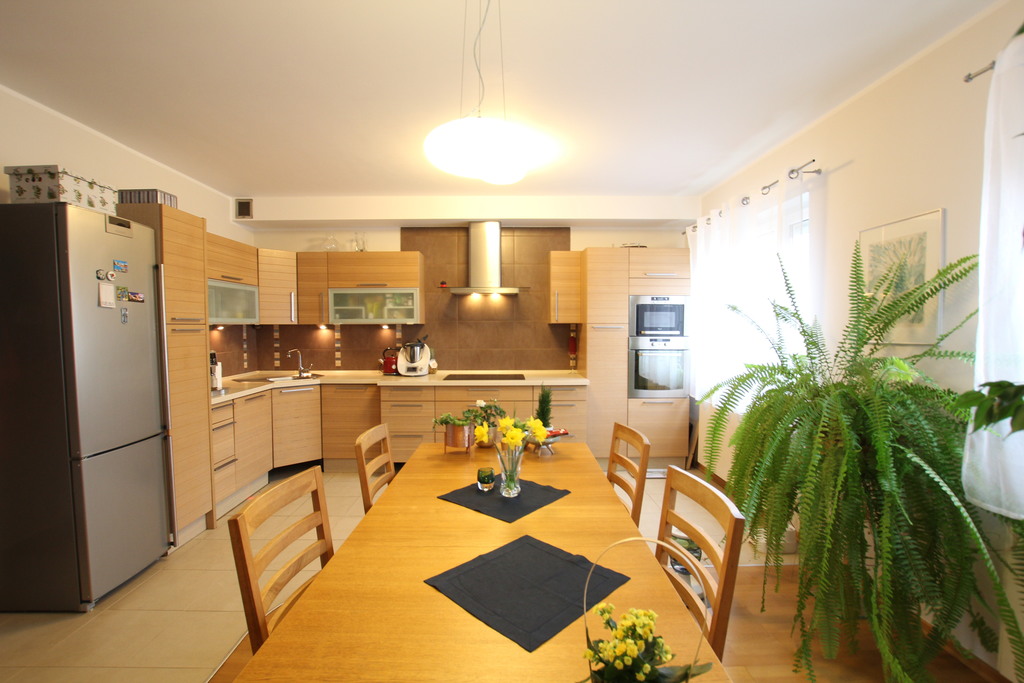 -otwartej pięknej dużej kuchni połączonej z jadalnią