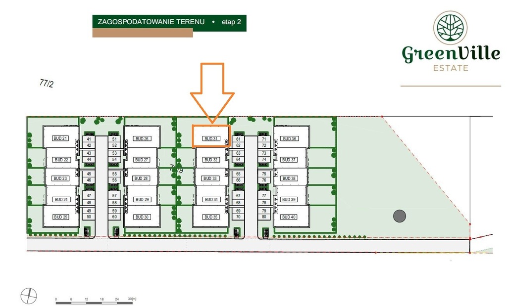 • 6 lokali – 77,33 m², 4 pokoje, ogrody po 65 m²