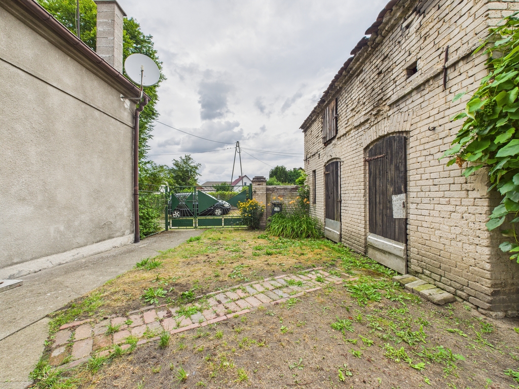 Forma prawna nieruchomości to lokal mieszkalny, praktycznie jest to większa część domu z odrębnym wejściem oraz ogrodzonym niewielkim ogródkiem oraz budynkiem gospodarczym.
