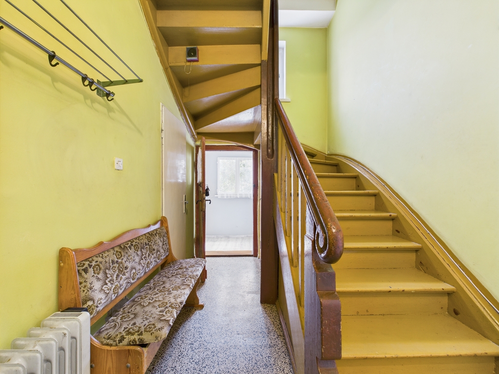 Posiada okna plastikowe, schody do góry oraz podłogi w pomieszczeniach na piętrze są drewniane (szeroka deska), które po wycyklinowaniu będą piękną ozdobą nieruchomości.