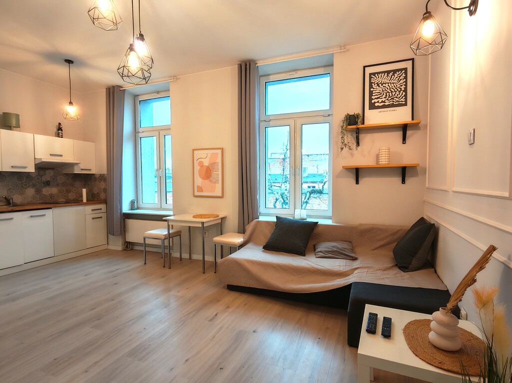 Lokal o powierzchni 24 m² znajduje się na 3. piętrze kompleksowo odrestaurowanej kamienicy przy ul. Lipowej. Ulica została przekształcona w tzw. woonerf, co oznacza ograniczony ruch samochodowy i przyjazną, spokojną przestrzeń miejską. Dodatkowo budynek jest odsunięty od ulicy i po termomodernizacji, dzięki czemu mieszkanie pozostaje ciche i komfortowe przez cały rok.