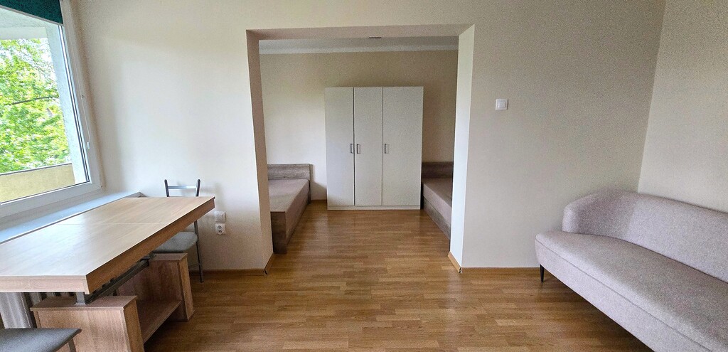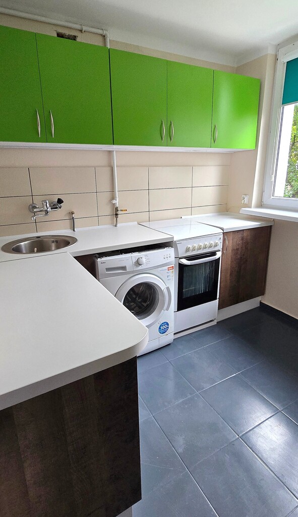 Mieszkanie jest gotowe do zamieszkania lub dalszego wynajmu – w pełni umeblowane i wyposażone w sprzęt AGD (pralka, lodówka, piekarnik). Każdy pokój jest zamykany, co czyni lokal idealnym jako inwestycję pod wynajem.