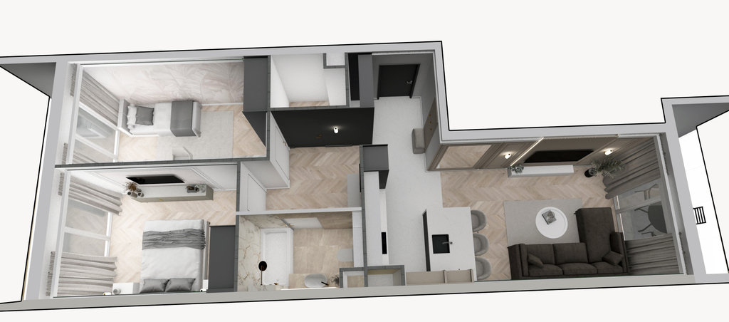Przedstawione wizualizacje i grafiki mają charakter wyłącznie poglądowy i stanowią wyłącznie materiał pomocniczy, ułatwiający zorientowanie się w ogólnym wyglądzie oferowanej nieruchomości.
