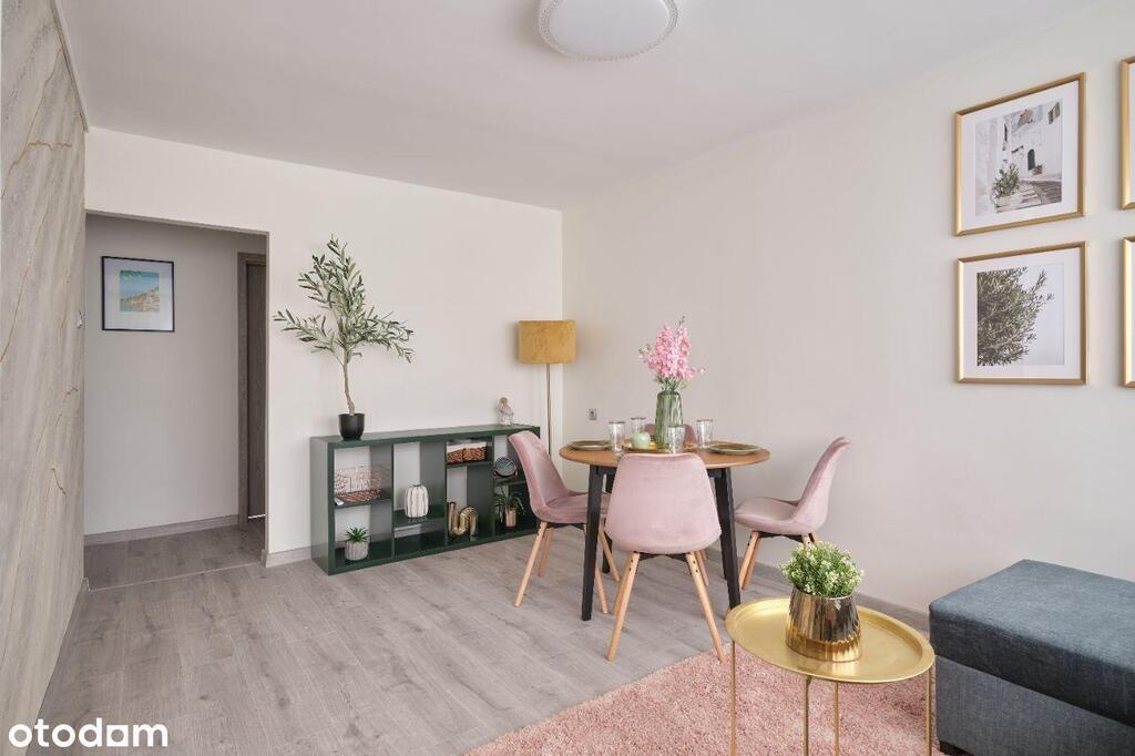 Dwupokojowe mieszkanie o powierzchni 43 m2 położone na czwartym piętrze czteropiętrowego bloku