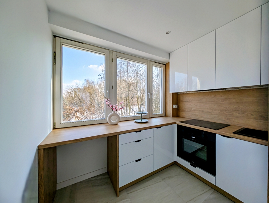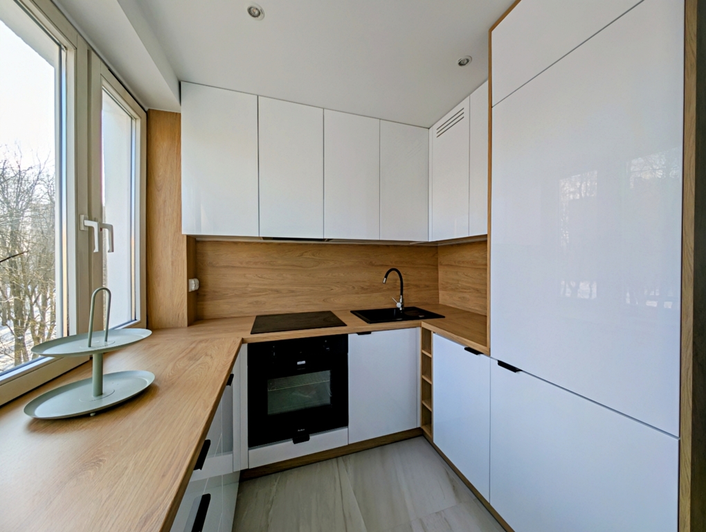 - meble kuchenne w zabudowie robione na zamówienie u stolarza (w cenie mieszkania sprzęt AGD: piekarnik, płyta indukcyjna, okap, zlew)