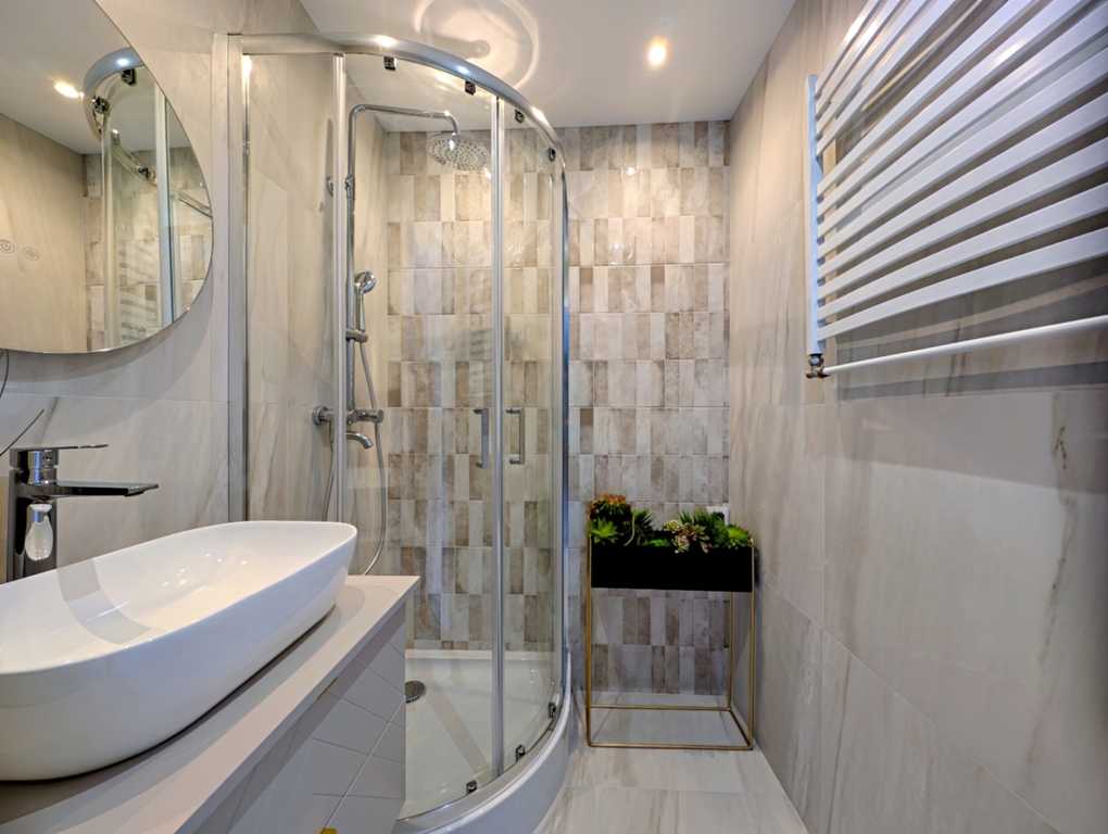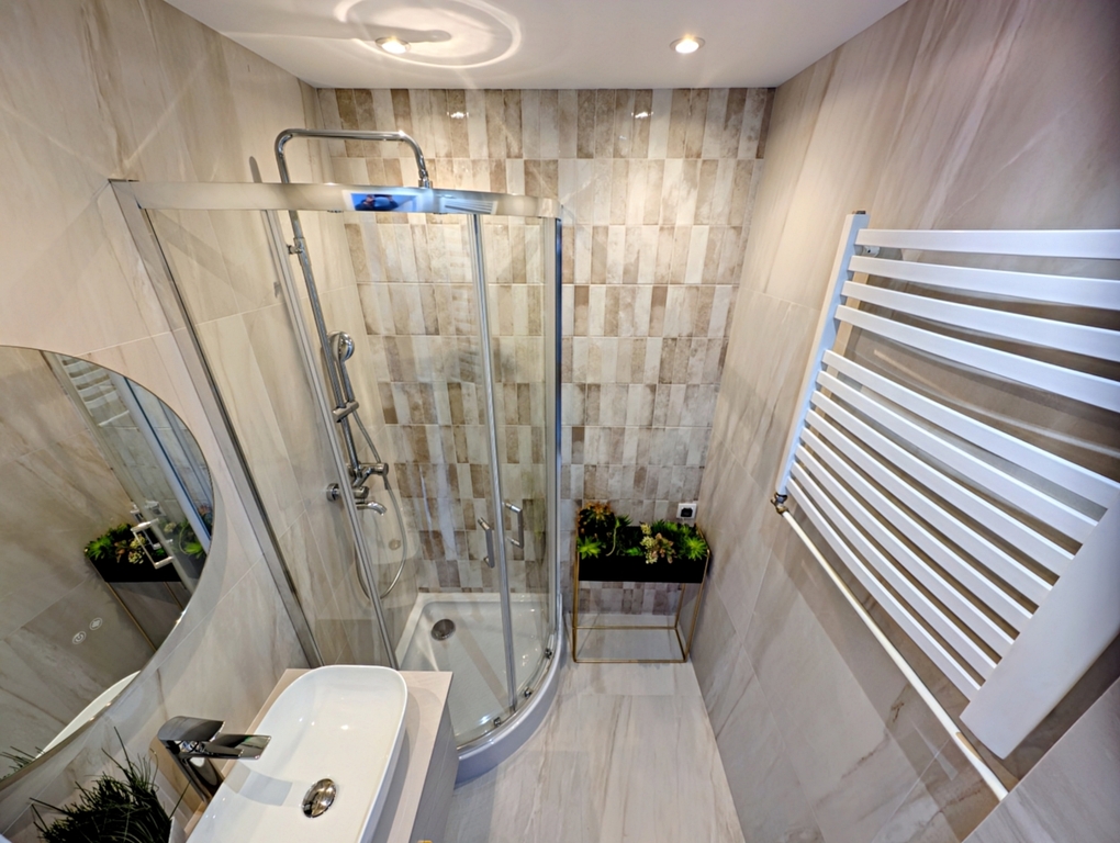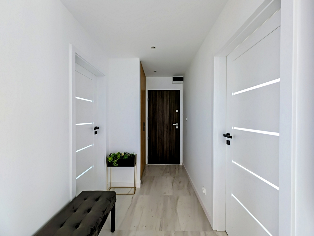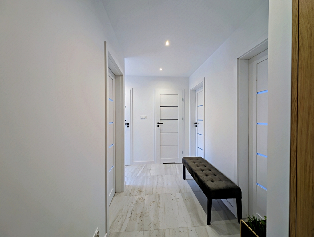 - wymianę podłóg (panele 10 mm klasa AC5, gres)