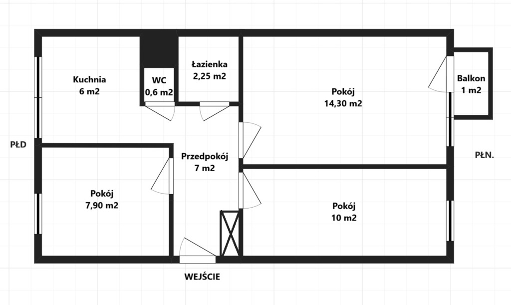 Na powierzchni 48,10 m2 znajdują się:- salon z wyjściem na balkon 14,30 m2