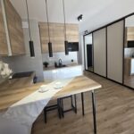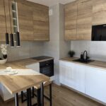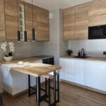 - meble kuchenne z zabudową, wykończone w nowoczesnym dizajnie