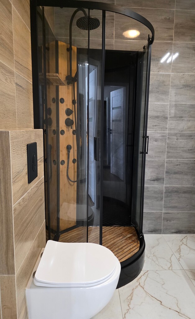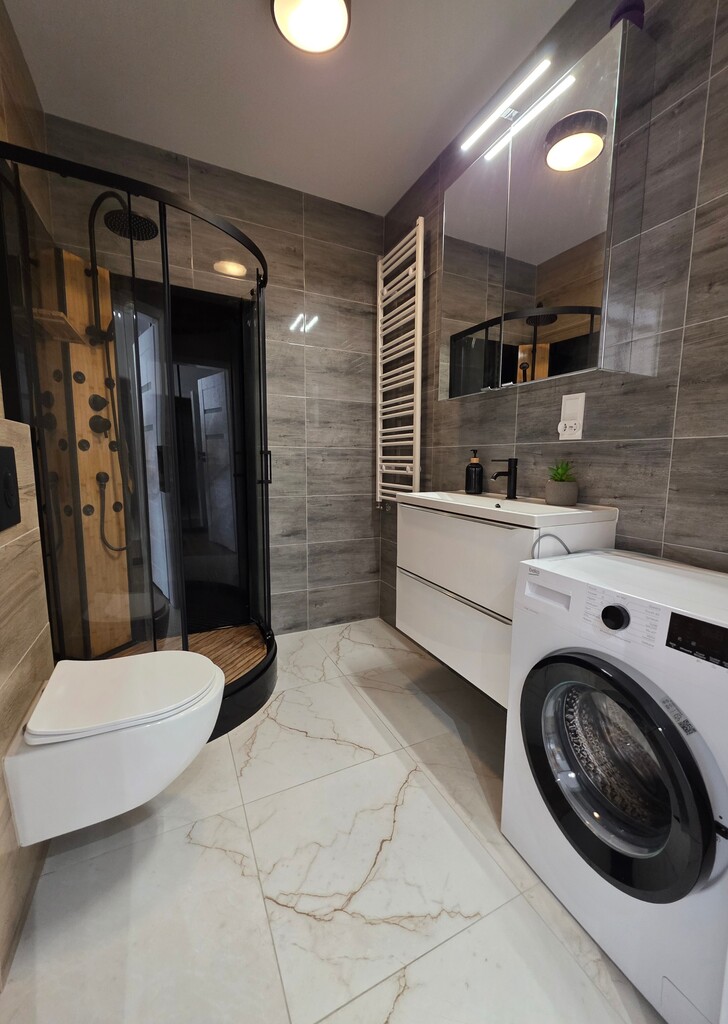 - funkcjonalna duża łazienka z kabiną prysznicową