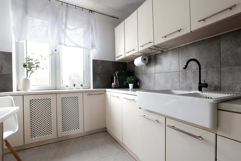 •Kuchnia z dużym oknem, funkcjonalnie zaprojektowana, co pozwala maksymalnie wykorzystać dostępną przestrzeń. Przygotowywanie posiłków z widokiem z okna to prawdziwa przyjemność.
