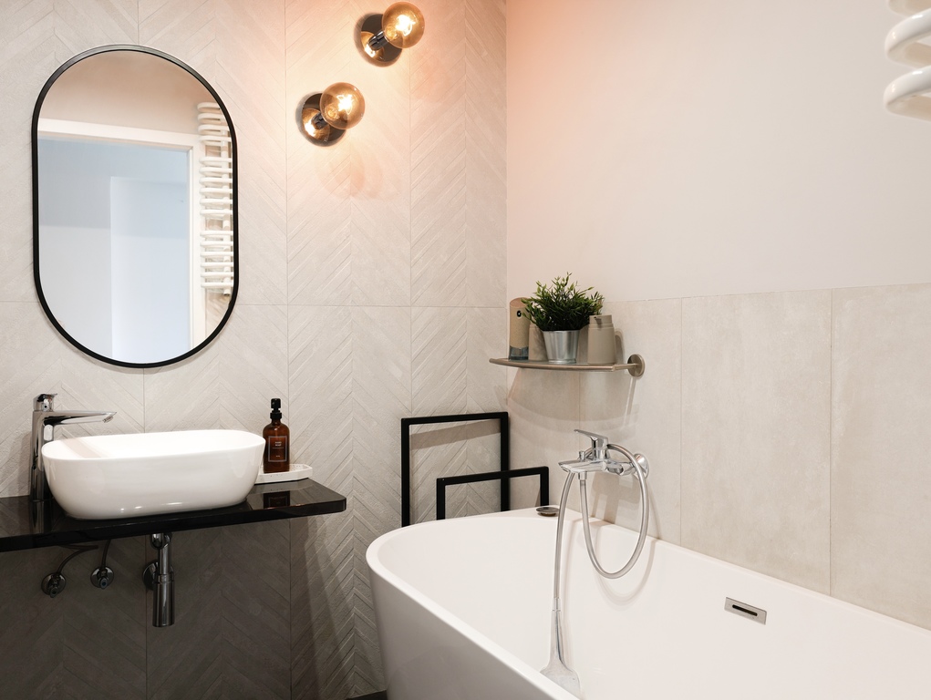 Umieszczona pomiędzy strefą dzienną a nocną, co jest niezwykle praktyczne – umożliwia łatwy dostęp zarówno z salonu, jak i sypialni.