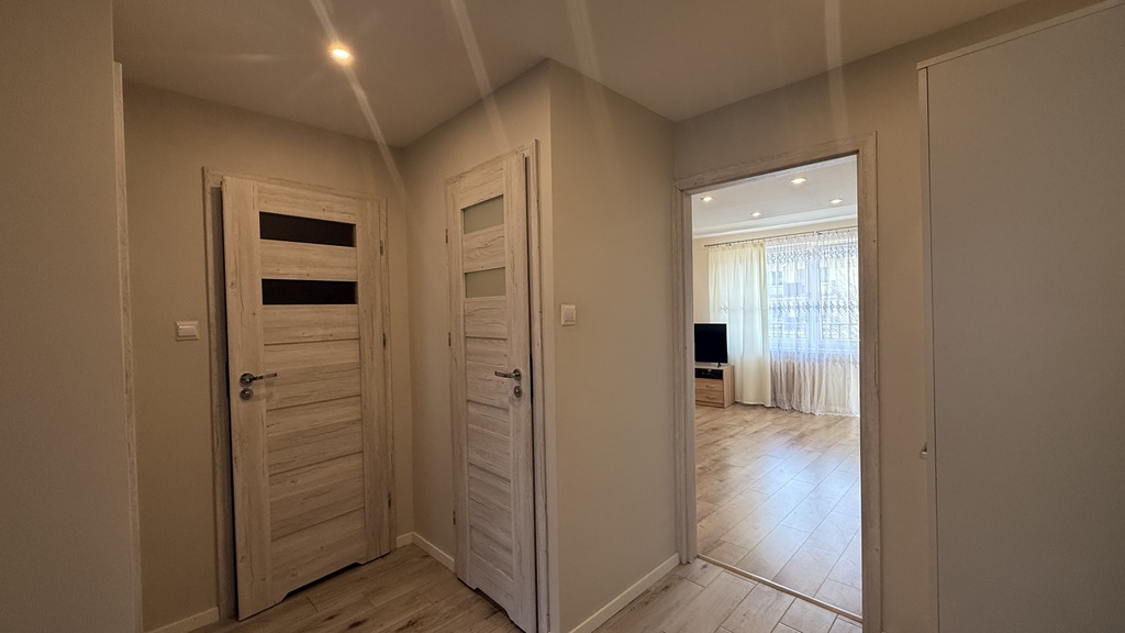 - Dwustronna wystawa (Wschód-Zachód): Mieszkanie jest niezwykle słoneczne i przewiewne. Rano słońce wita Cię w sypialni i kuchni, a po południu wypełnia salon i balkon, tworząc idealne warunki do relaksu.