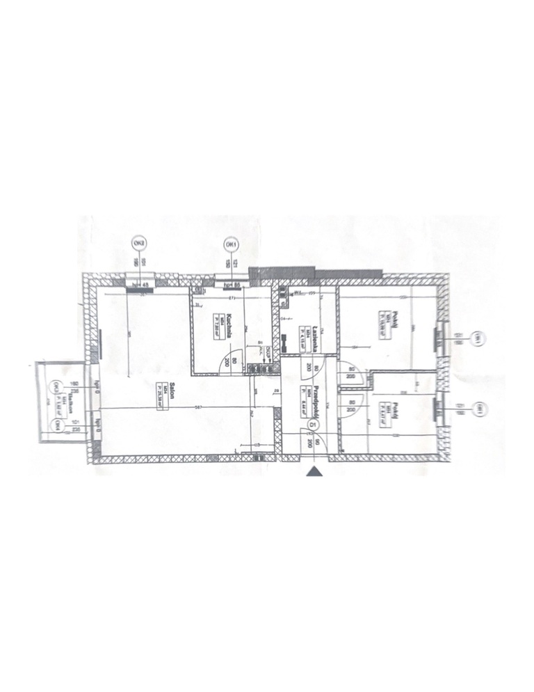 Mieszkanie może być zaadaptowane na dowolny układ np. 2 pokoje, salon, oddzielna kuchnia (patrz zdjęcie z rzutem mieszkania) lub np. 3 pokoje i salon z aneksem kuchennym.