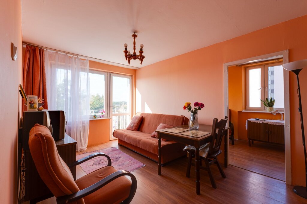 Sprzedam słoneczne, trzypokojowe mieszkanie położone na czwartym piętrze w wieżowcu.