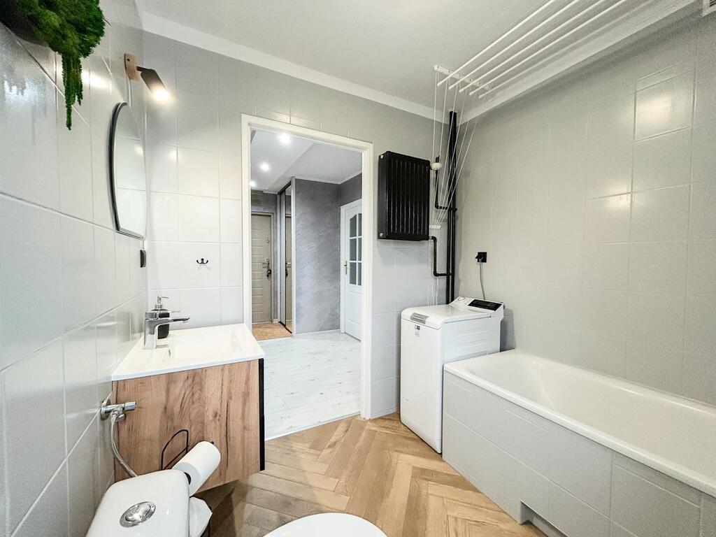 2 sypialnie + salon z otwartą kuchnią, łazienka z WC, przedpokój - Balkon z dwuskrzydłowymi drzwiami balkonowymi- Nowoczesne wnętrze z częściowym wyposażeniem –