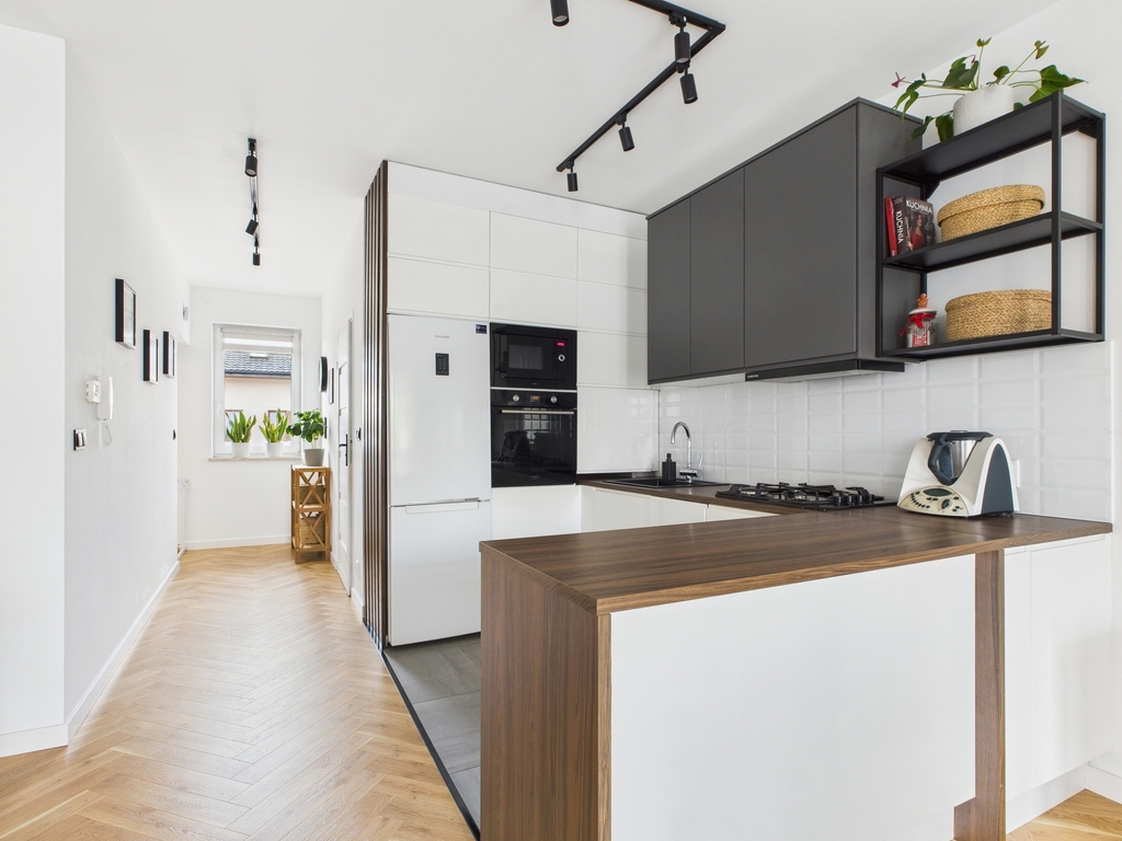 - Ogrzewanie podłogowe: kuchnia i łazienka na dole
