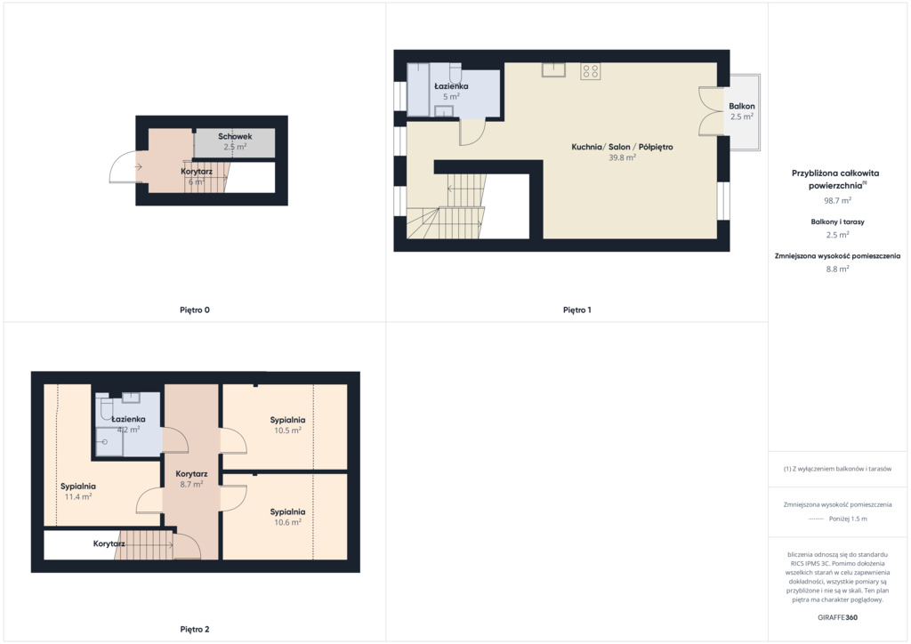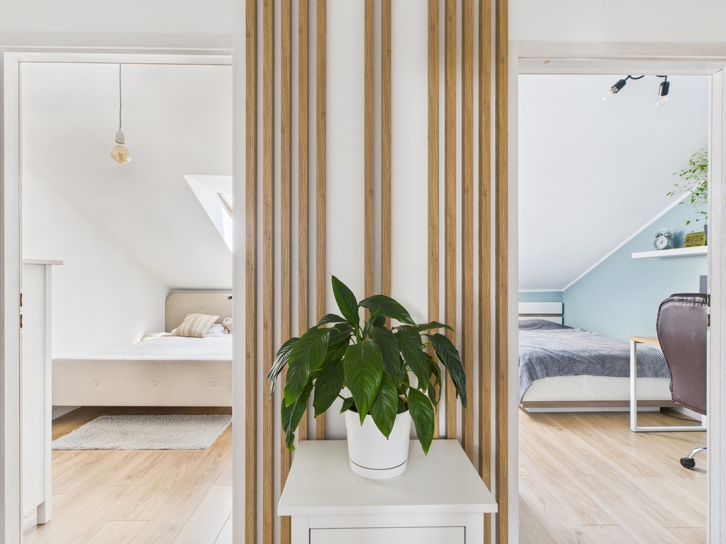 Poddasze: 38,56 m2 / 49,92 m2 liczone po podłodze – 3 sypialnie i łazienka z prysznicem