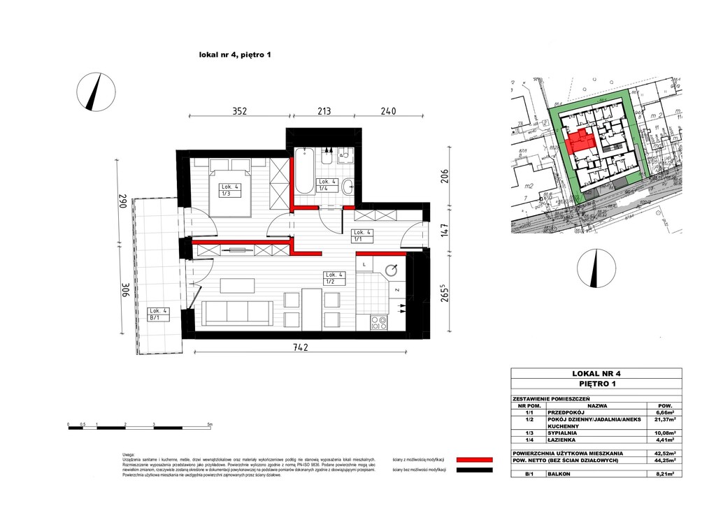 4.   42,52 m2,    2 pokoje - 510 240 zł