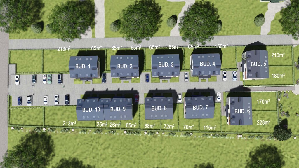- zadrzewiona część rekreacyjna o powierzchni około  1400m2 ,gdzie powstanie plac zabaw i ławki