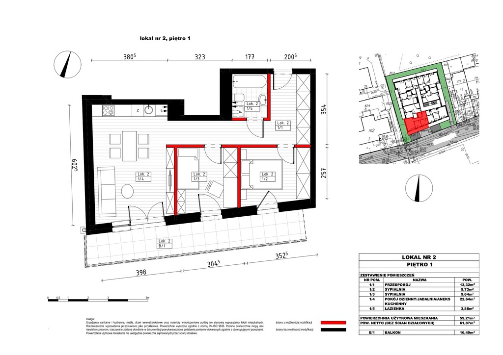 2. 59,21 m2, 3 pokoje - 680 915 zł