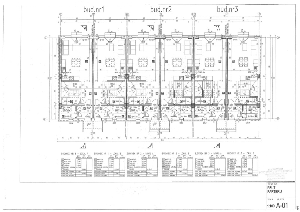 - ogródki w segmentach 1-5 posiadają ogródki o powierzchni 35 m2. Ogródek segmentu 6 posiada ogródek o powierzchni 115m2