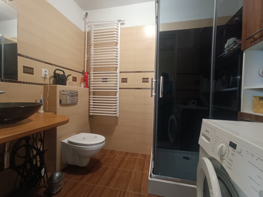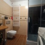łazienki z WC oraz prysznicemDo mieszkania przynależy