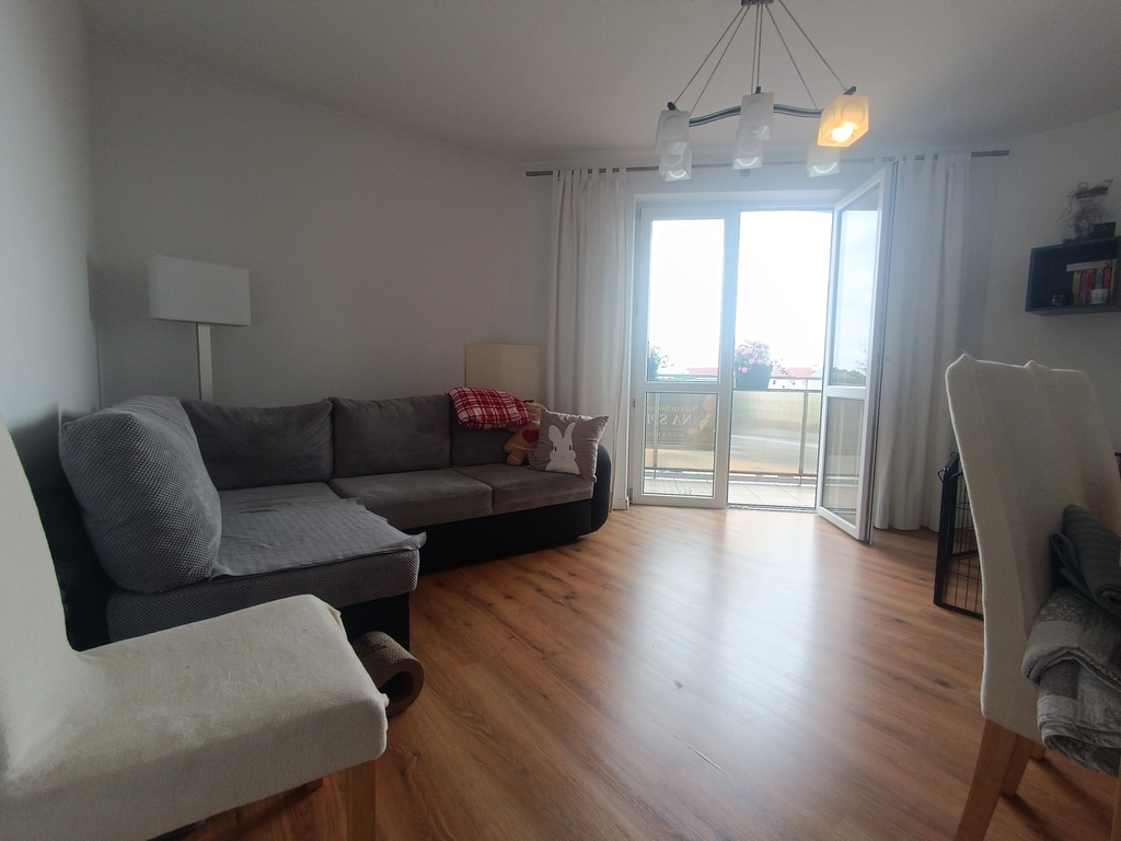Mieszkanie gotowe do wprowadzenia się. Na podłogach płytki oraz panele podłogowe.