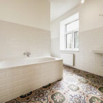 Łazienki wykończono płytkami hiszpańskiej firmy Peronda, armaturą Omnires (styl art deco) oraz ceramiką Roca.