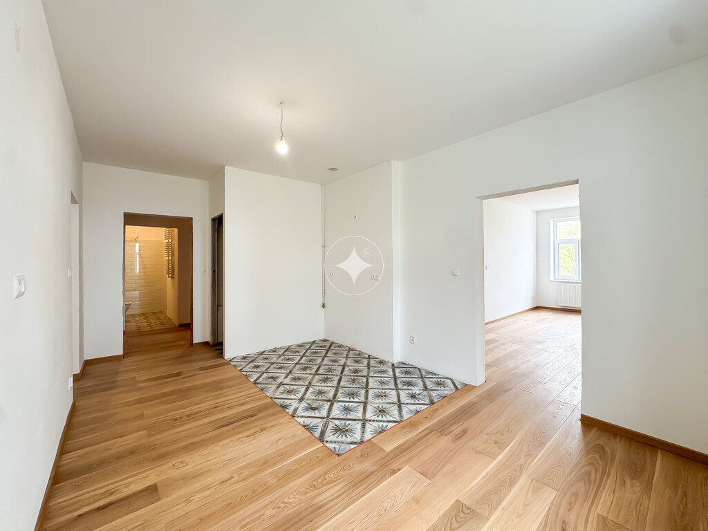 W trakcie remontu wymieniono instalacje elektryczne i hydrauliczne, doprowadzono gaz oraz zamontowano nowoczesne grzejniki CO. Ściany zostały wykończone gładzią, a na podłogach znajduje się elegancka deska Barlinecka.