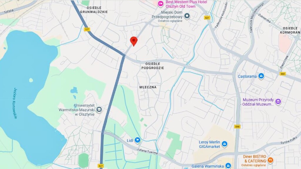 Świetna lokalizacja dla studentów - odległość od Uniwersytetu około 1000 m; odległość od Starówki - 700 m ; odległość od jeziora - 800 m.