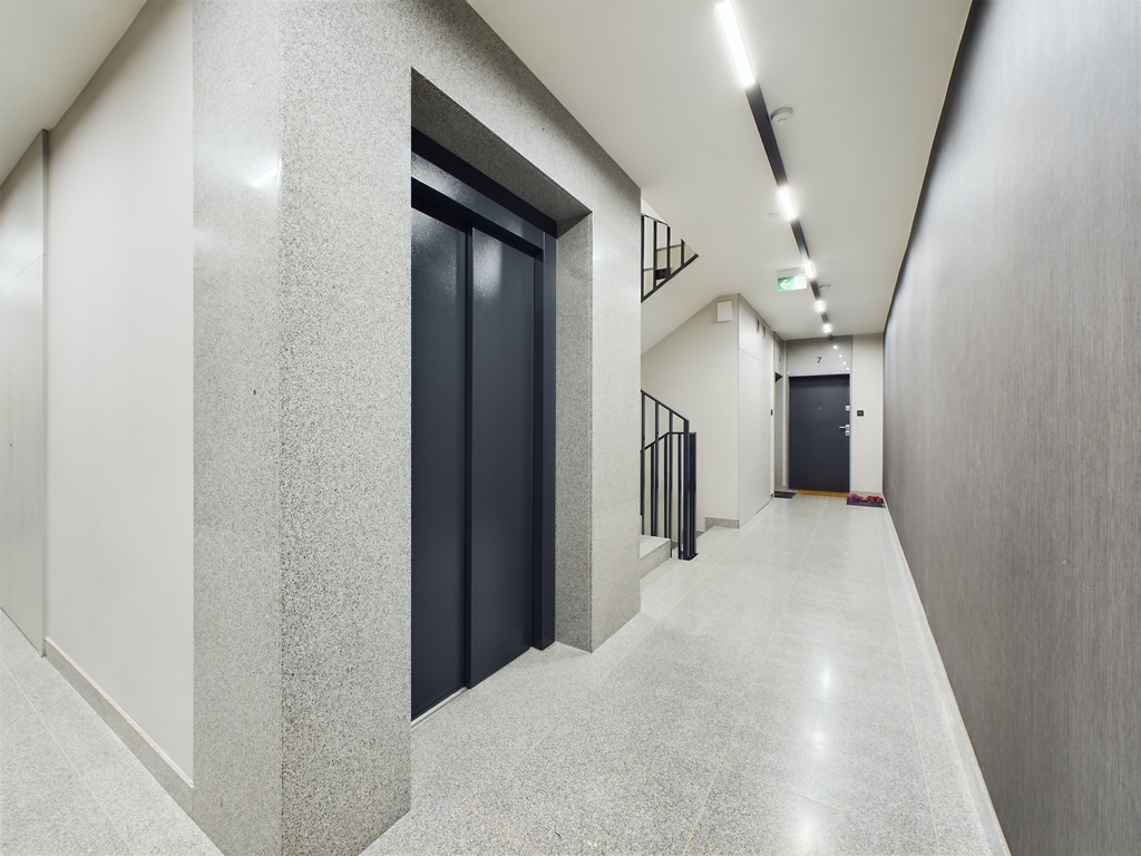 Mieszkanie znajduje się na I piętrze w budynku z windą i ma powierzchnię 57,1 m²: