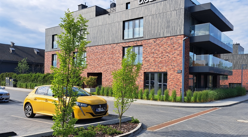 - Osiedle jest ogrodzone, otoczone zielenią, a budynek zabezpieczony domofonem i kamerą.
