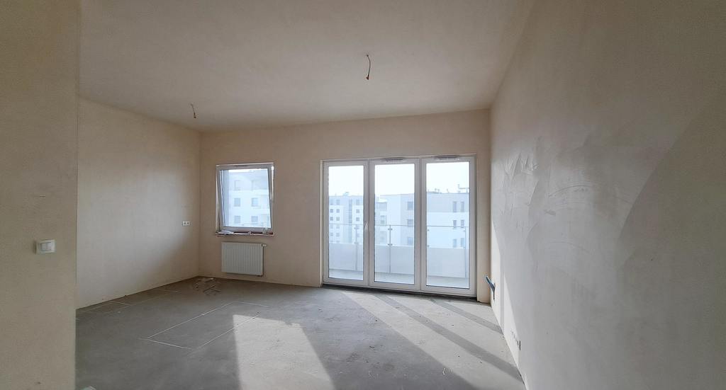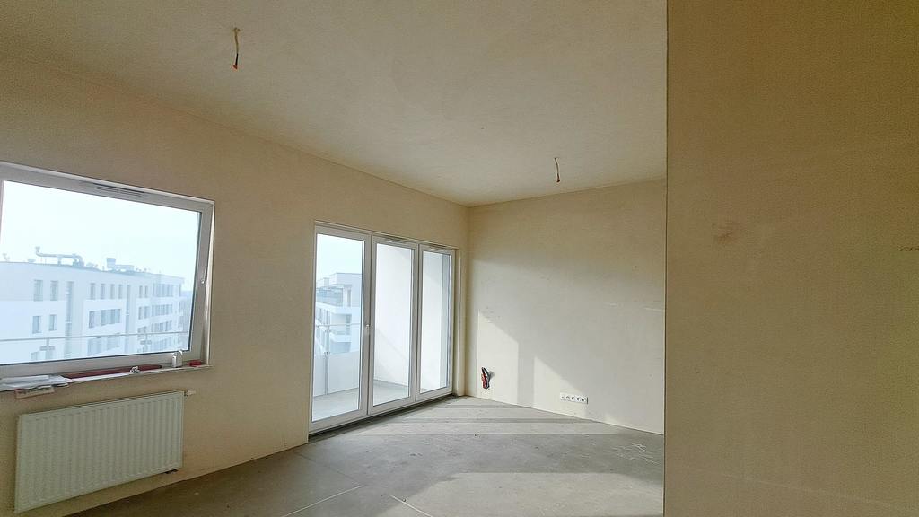 Mieszkanie jest w stanie developerskim z oknami PCV.