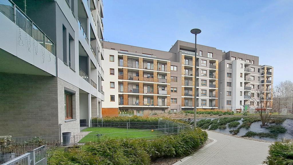Blok, w którym znajduje się mieszkanie znajduje się na zamkniętym, zielonym terenie, z wieloma miejscami parkingowymi, ławkami i placem zabaw.