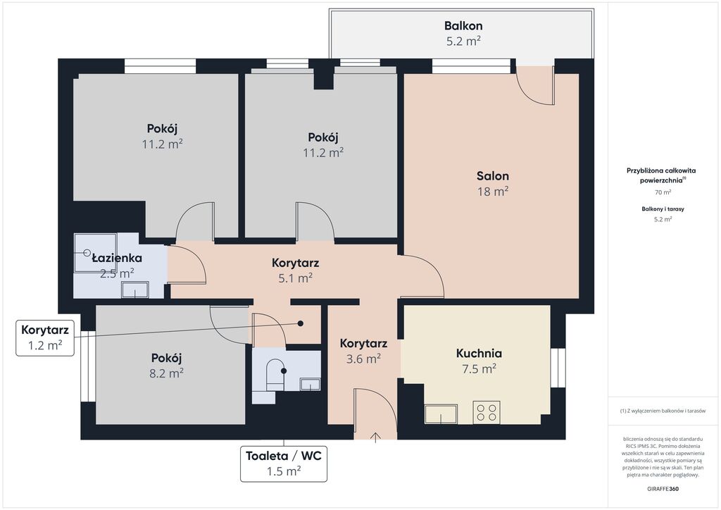 Na powierzchnię 72,50 m2 składają się: