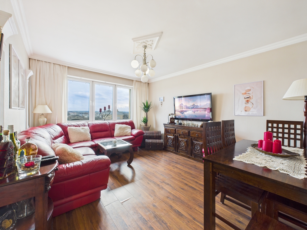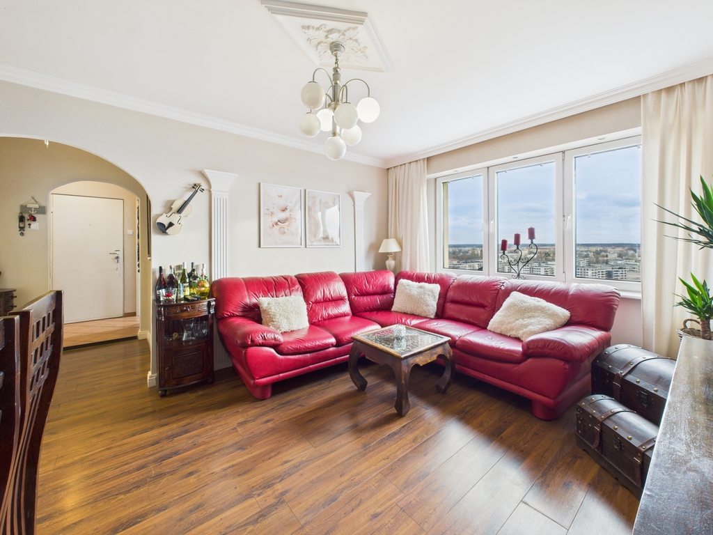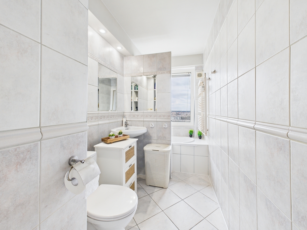 Atutem mieszkania jest piękny, szeroki widok – wysoka kondygnacja zapewnia panoramę miasta, dużo przestrzeni i brak zasłaniających budynków.