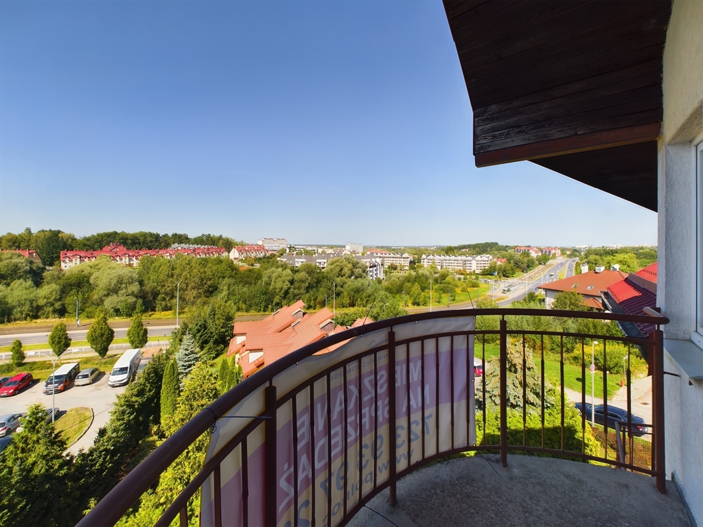Salon z balkonem: Przestronny, jasny, z pięknym widokiem na zachód.