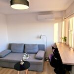 Mieszkanie zostało zaprojektowane z myślą o komforcie i funkcjonalności.- Salon – przestronny, stylowo urządzony, wyposażony w wygodny zestaw wypoczynkowy oraz telewizor, które pozostają w cenie mieszkania.