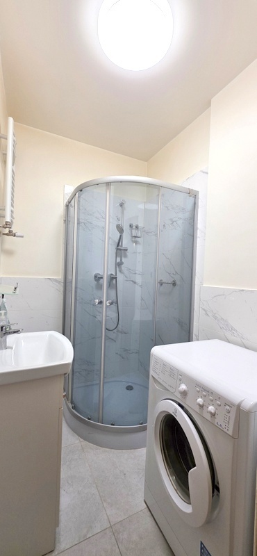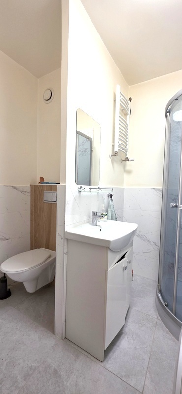 Łazienka pozostaje w dobrym stanie, co może ograniczyć zakres pierwszych prac i pozwolić rozłożyć remont w czasie.