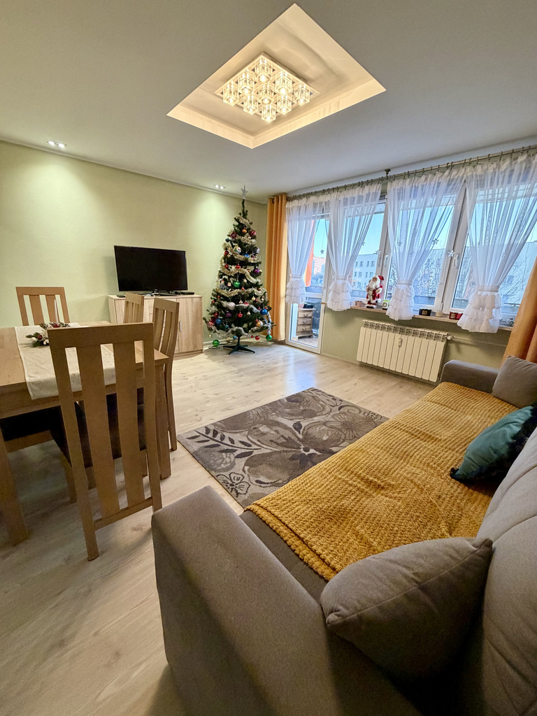 Parametry mieszkania:- Powierzchnia: ok. 61 m² (powierzchnia mieszkalna 57 m² + piwnica).