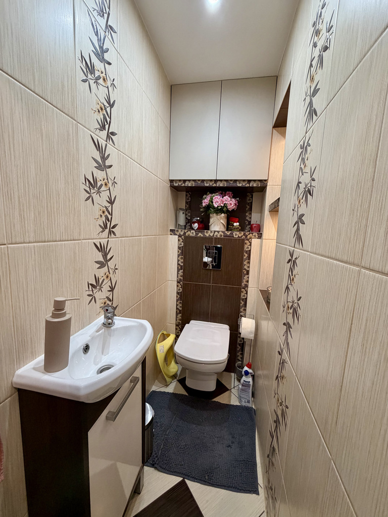 - Łazienka (2,8 m²) oraz osobne WC (1,3 m²).