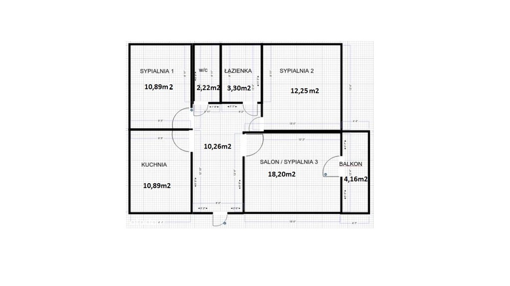 Mieszkanie składa się z trzech niezwykle przestronnych pokoi, w tym dużego salonu na wprost kuchni. Rozwiązanie to dobrze sprawdza się przy okazjonalnych przyjęciach gdy mamy szybki dostęp do kuchni.