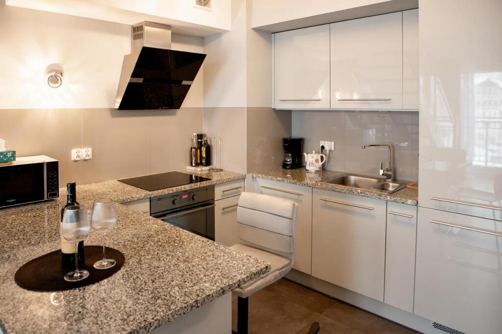 Cały lokal wykończony w wysokim standardzie, blaty kuchenne granitowe,